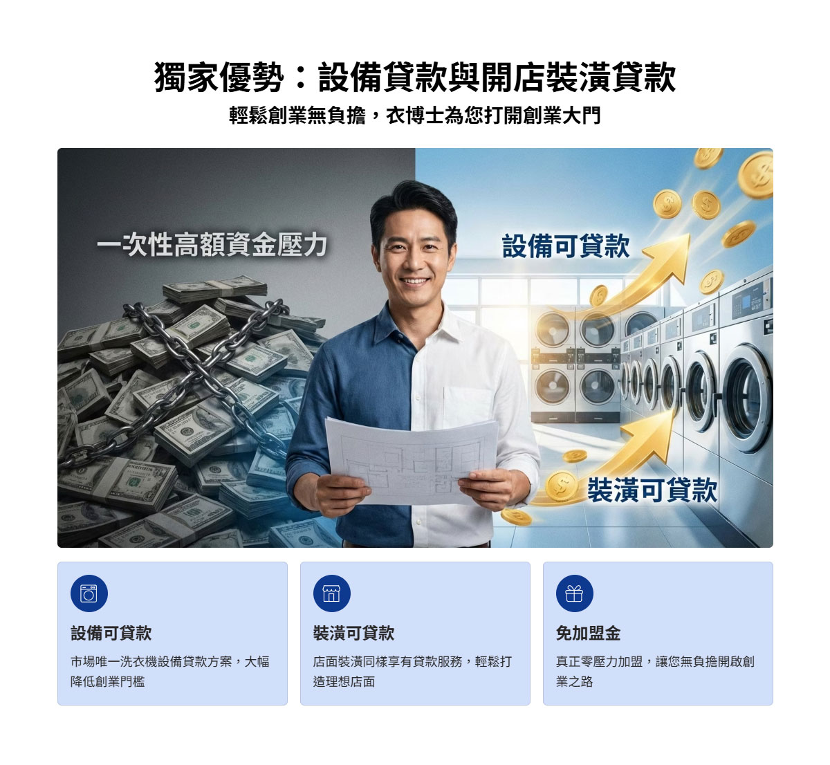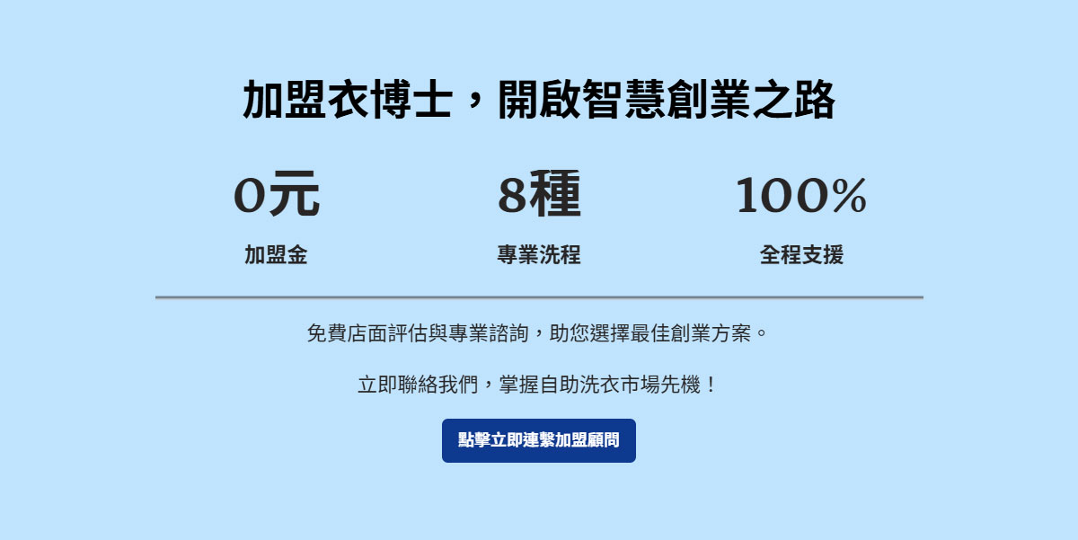 衣博士自助洗衣加盟|免加盟金 × 設備可貸款 × 一條龍開店服務